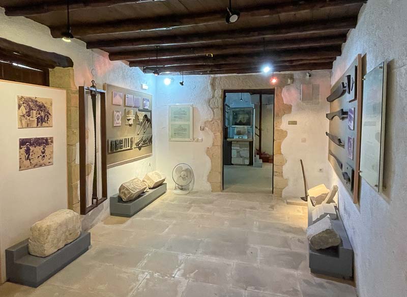 Housed in a beautifully restored stone building, the museum offers a fascinating glimpse into everyday life in Crete during past centuries. As we step inside, we are transported back in time through carefully preserved exhibits that showcase traditional costumes, handcrafted lacework, agricultural tools, household items, and historical photographs.